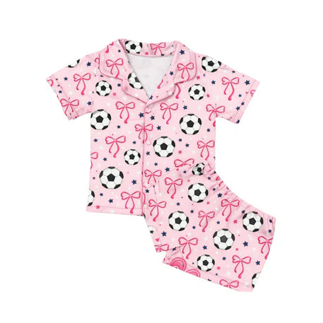 MOQ:5pcs GSSO3545 pre-order kids clothes football print girl summer outfit clothing set-2026.3.9
