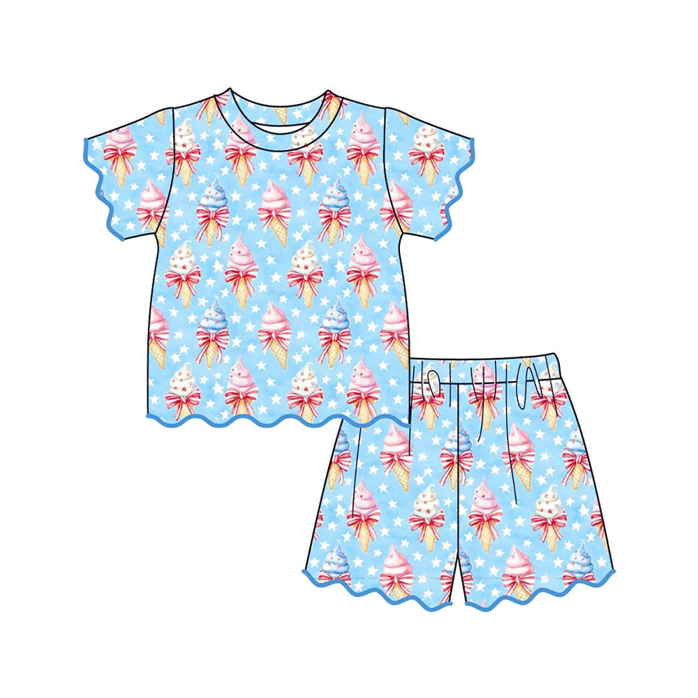 MOQ:5pcs GSSO3547 pre-order kids clothes ice cream print girl 4th of July summer outfit clothing set-2026.3.9