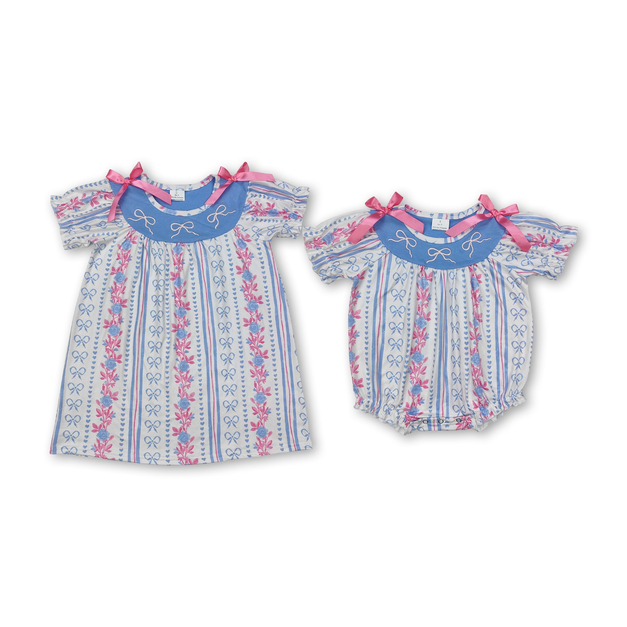 RTS kids clothing Matching Summer Dress Bow Grandmillennial Summer Clothing