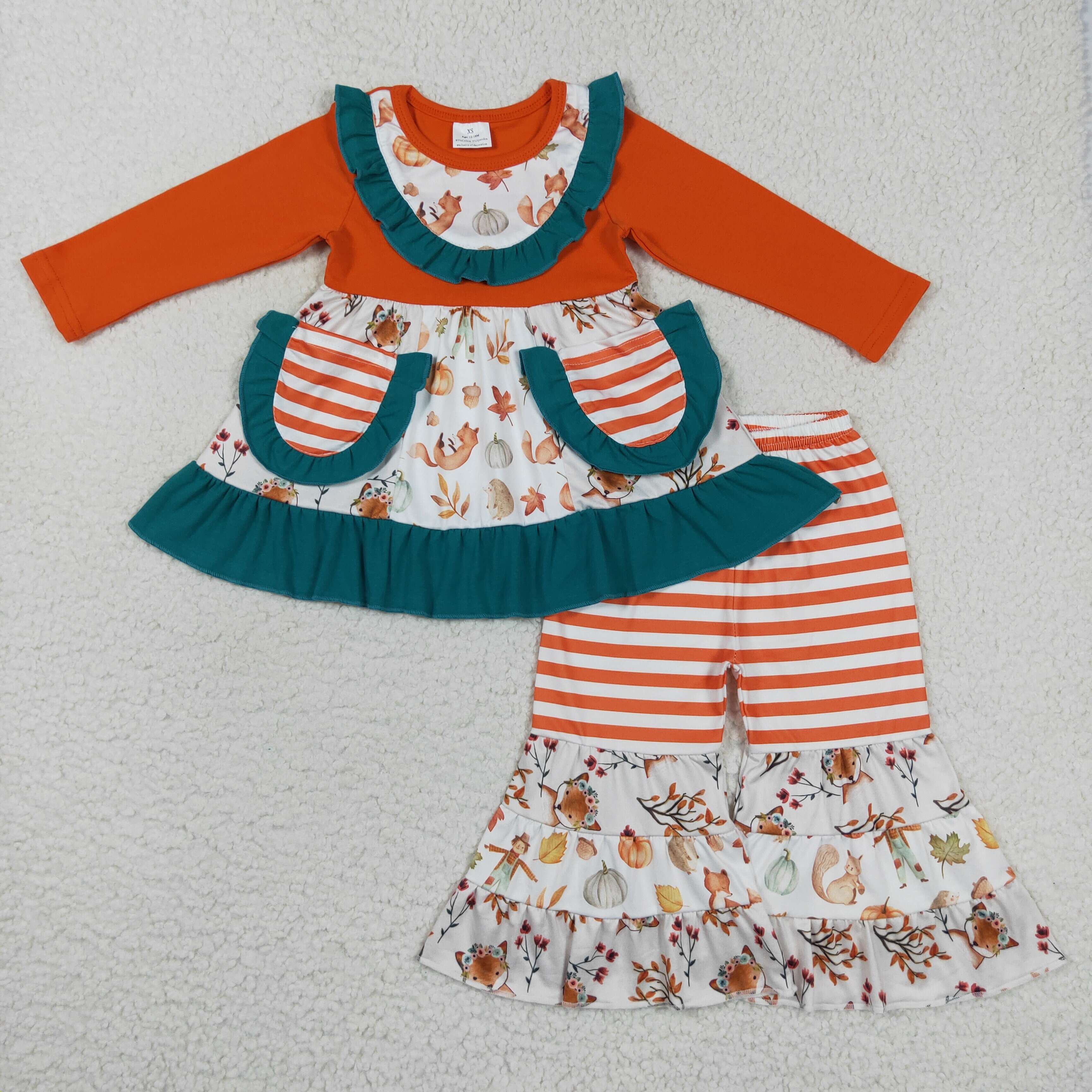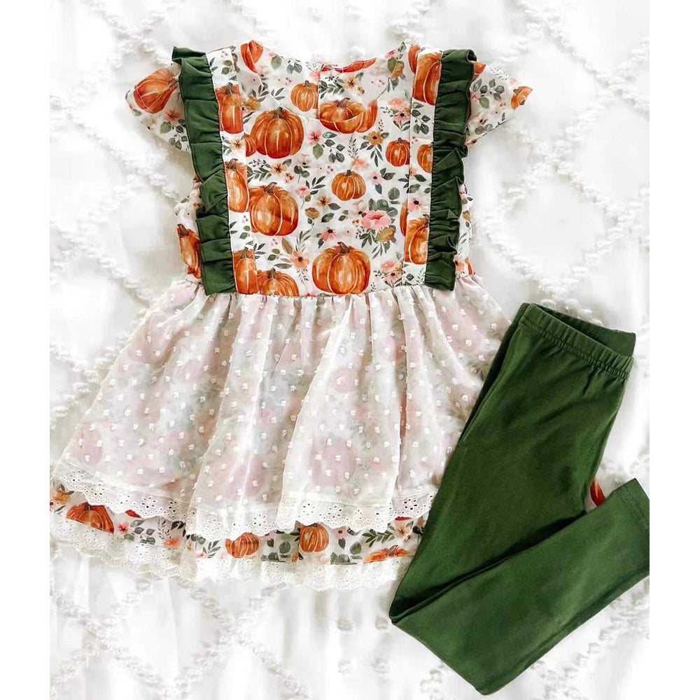 GSPO0818 toddler girl clothes here are the pumpkin pie girl halloween bell bottom outfit