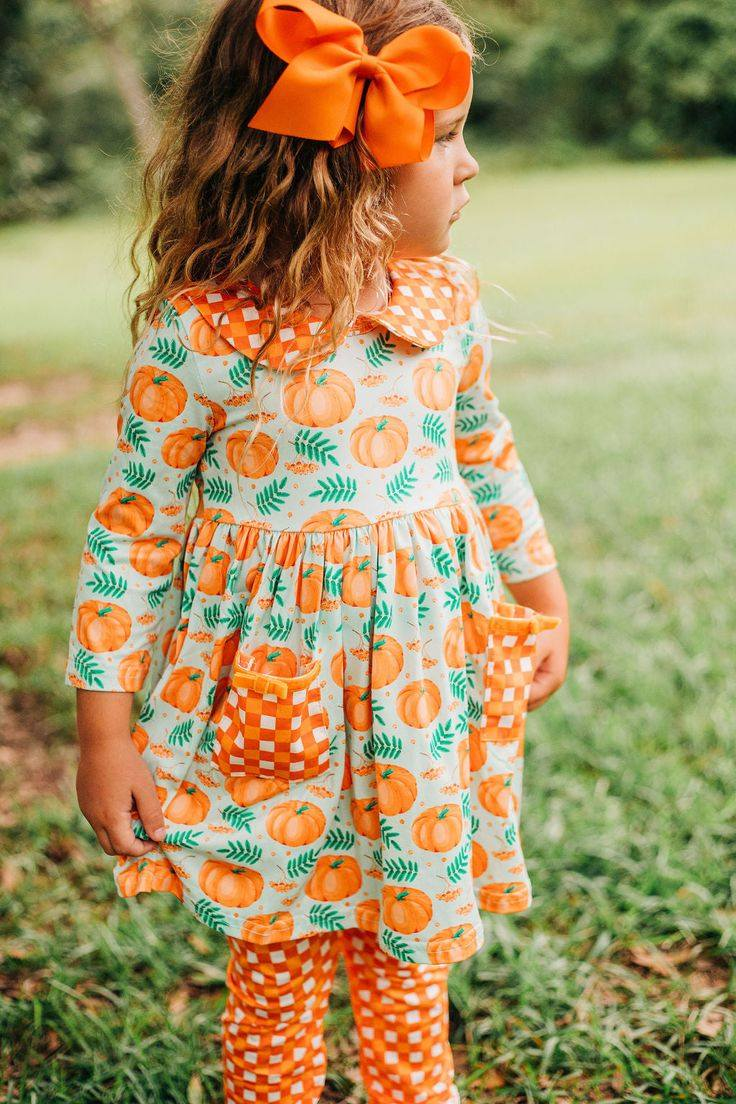 RTSGLP0786 baby girl clothes girl halloween outfit pumpkin girl fall outfit RTS