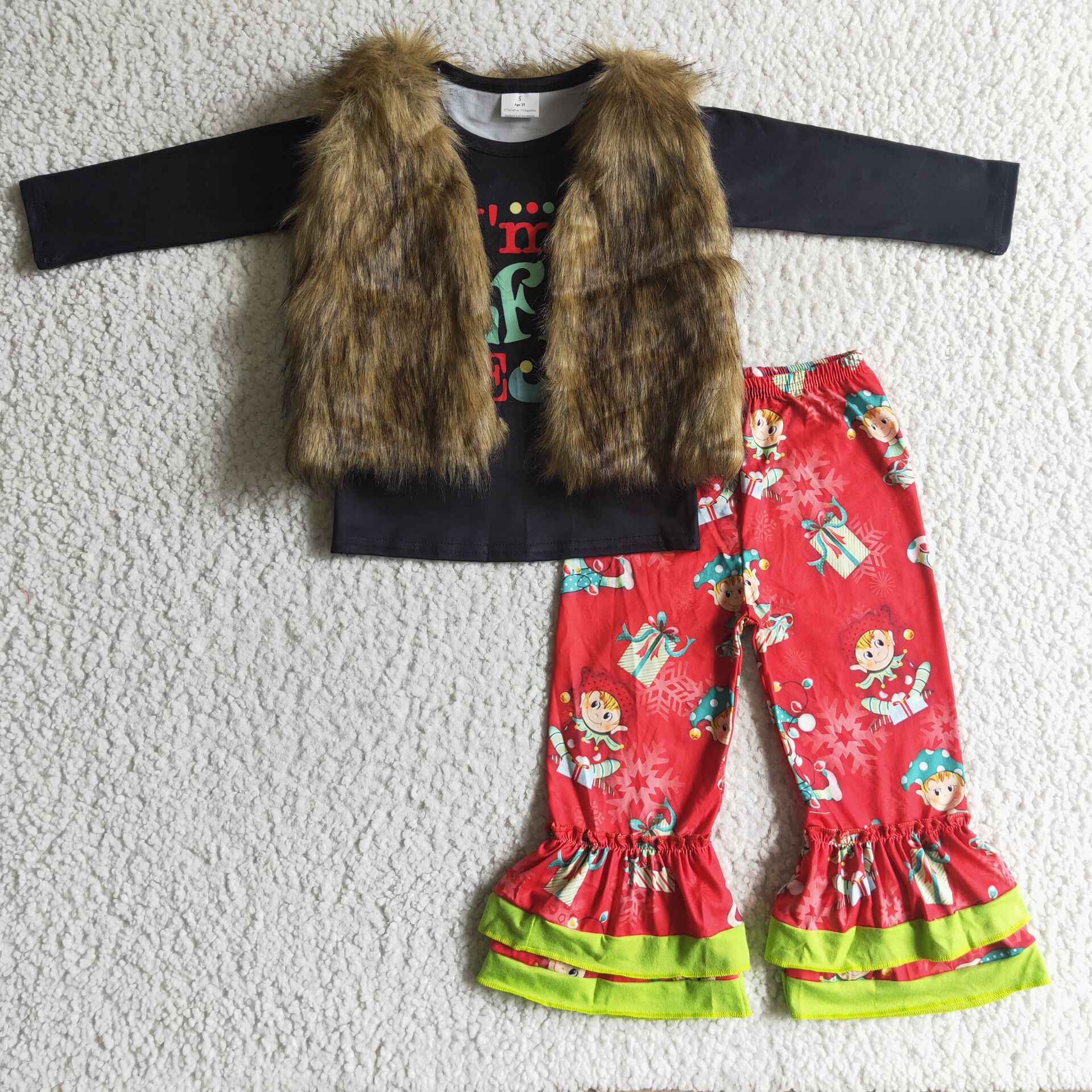 brown fur vest red cartoon christmas outfits baby girl clothes 5