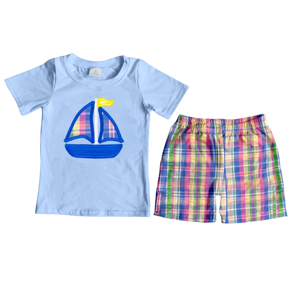 BSSO0127 baby boy clothes summer outfits embroidery boy shorts set embroidered