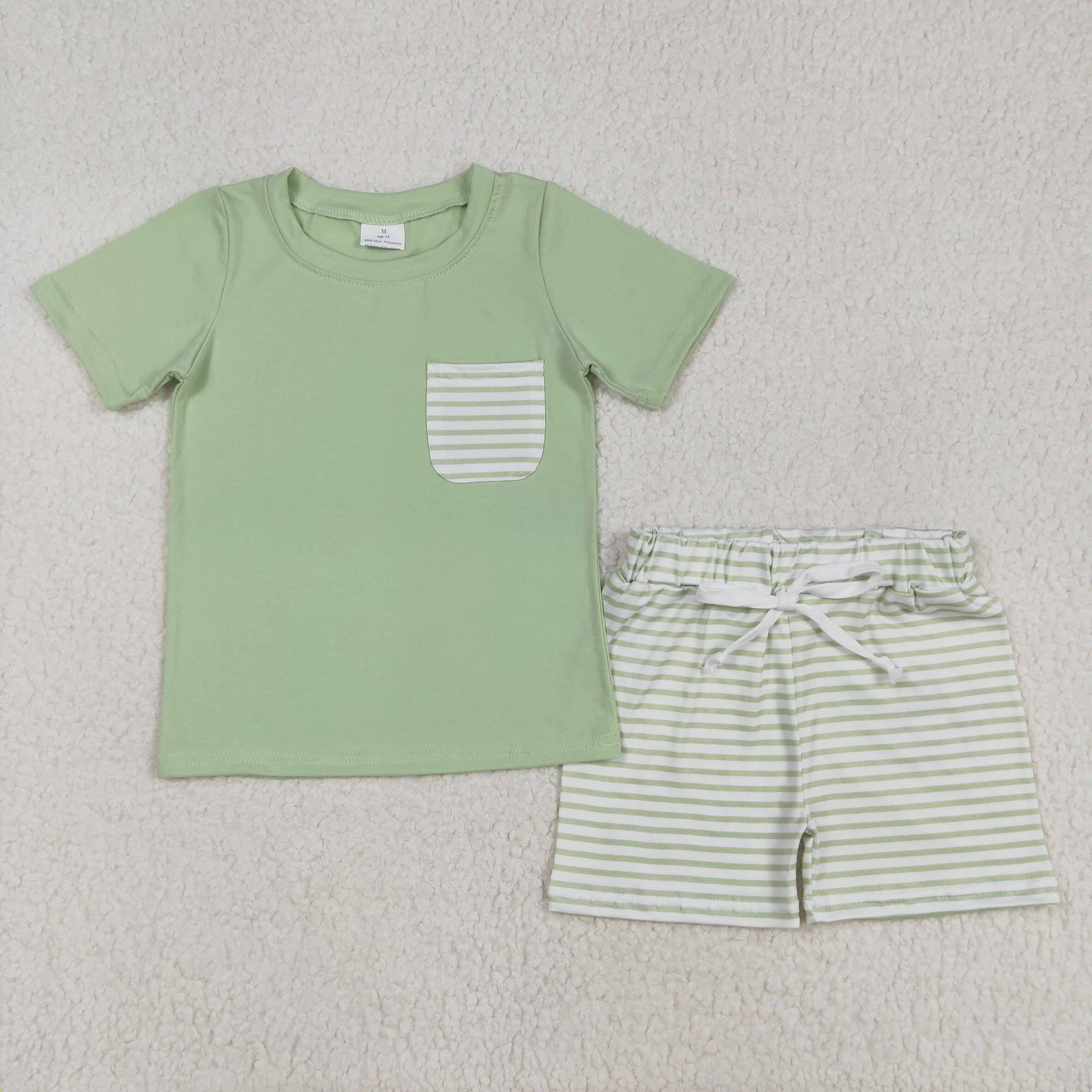BSSO1103 RTS boy clothes green stripes toddler boy summer outfit