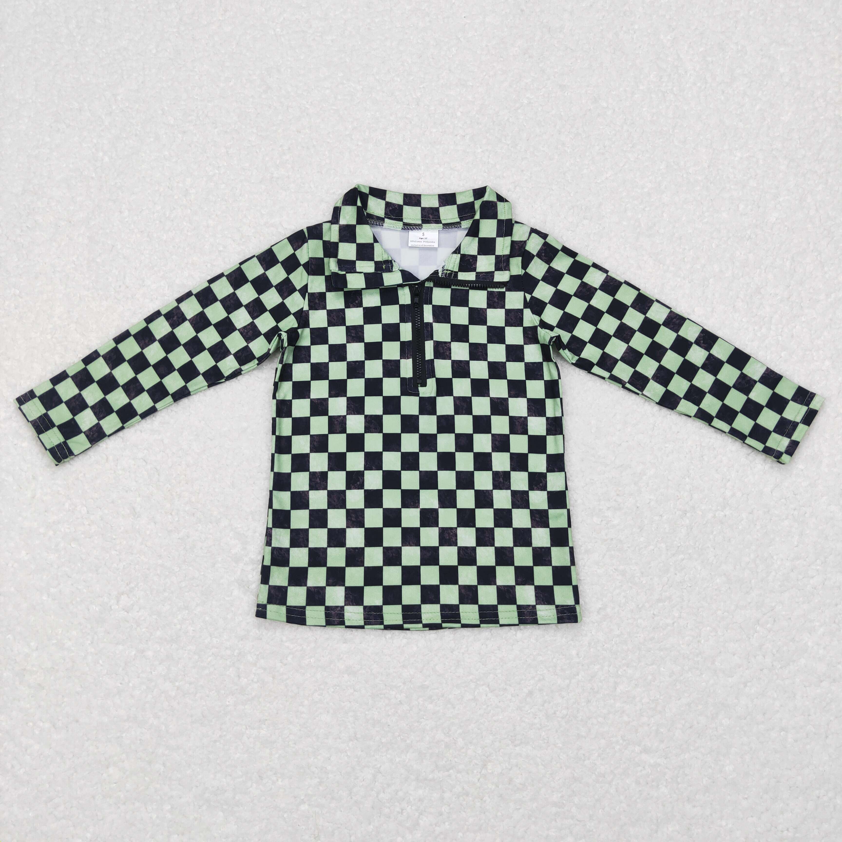 BT0399 baby boy boy clothes green plaid winter zipper top shirt pullover