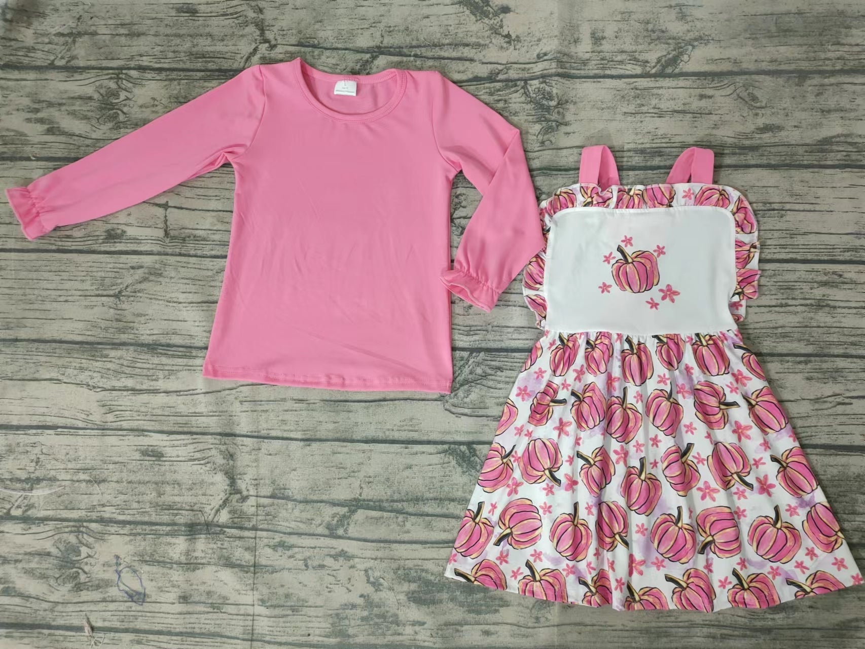 GLD0032 halloween boutique kids clothing pink shirt + dress outfit RTS