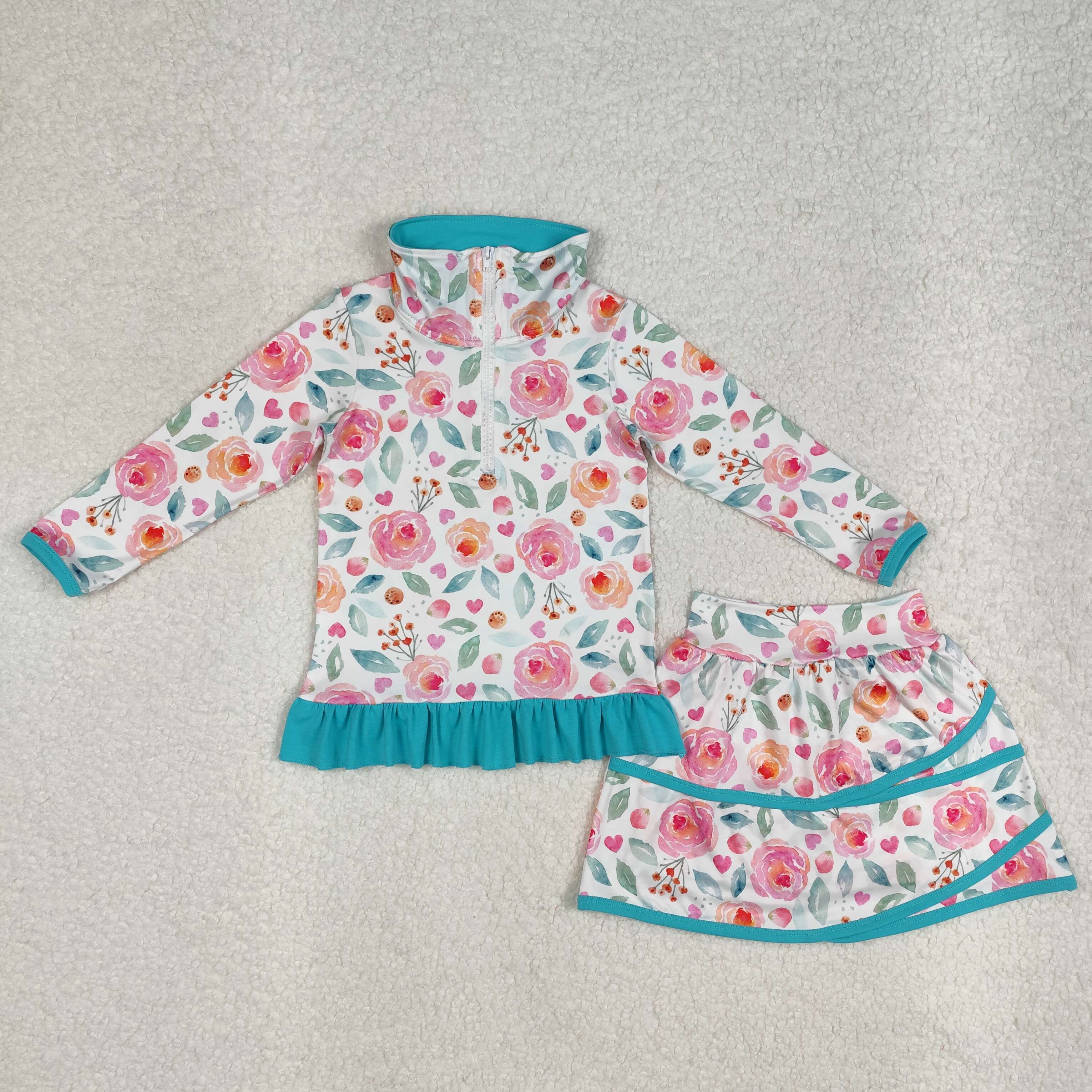 GLD1009 RTS girl clothes floral girl skirt outfit Girl Winter Clothing
