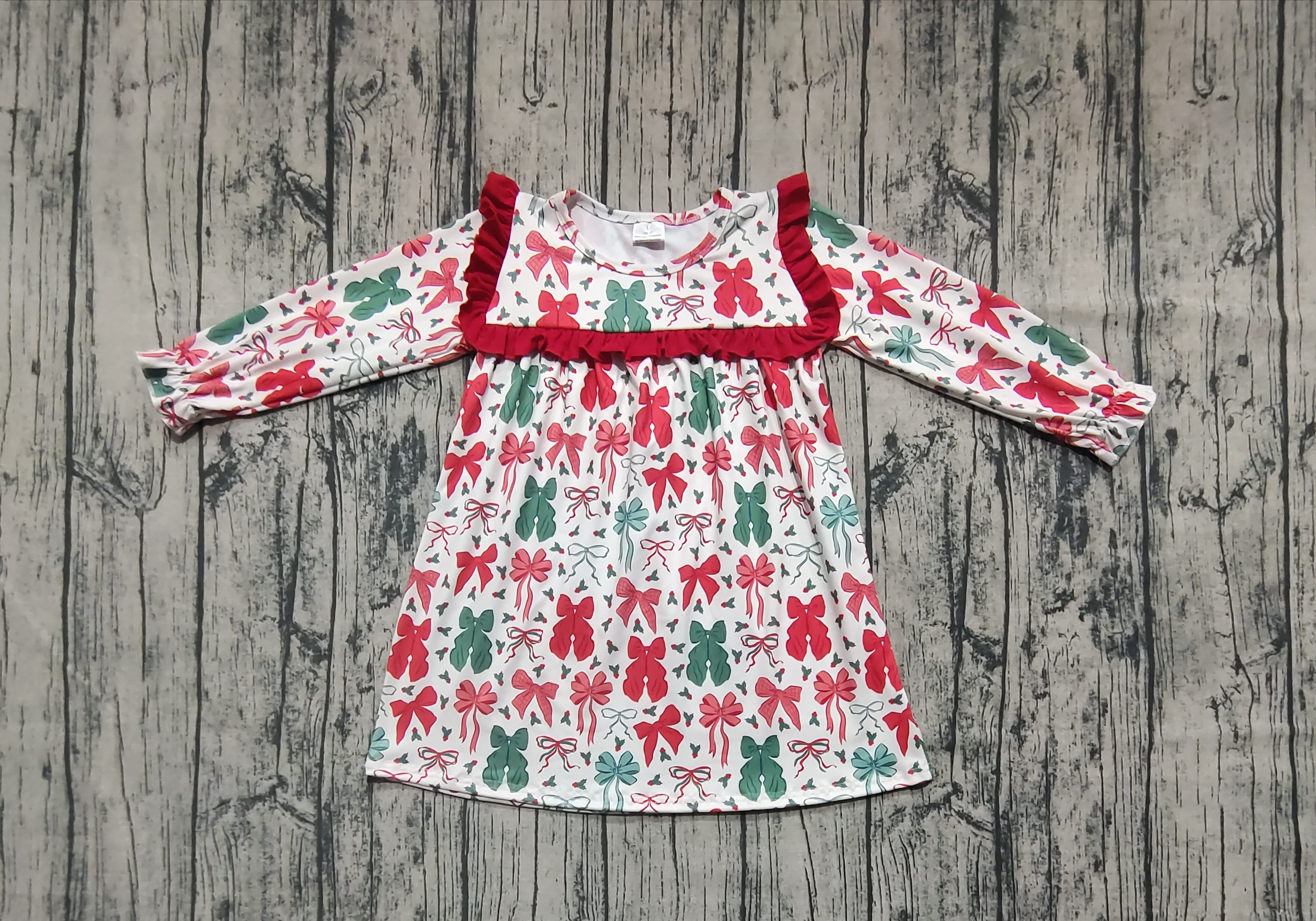 GLD1046 pre-order toddler clothes bows baby girl winter christmas dress-real pic 2025.6.8