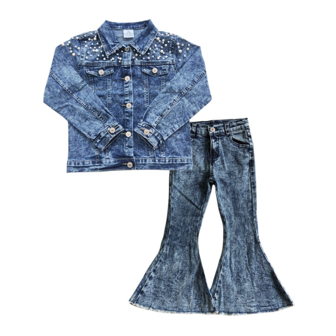 GLP1110 baby clothes girls denim jacket bell bottoms outfit