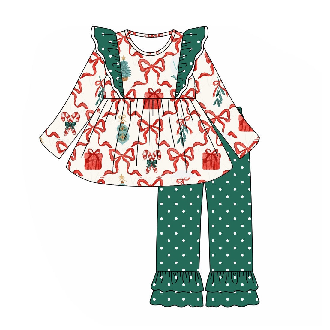 GLP1419 toddler girl clothes bow gift girl christmas winter set