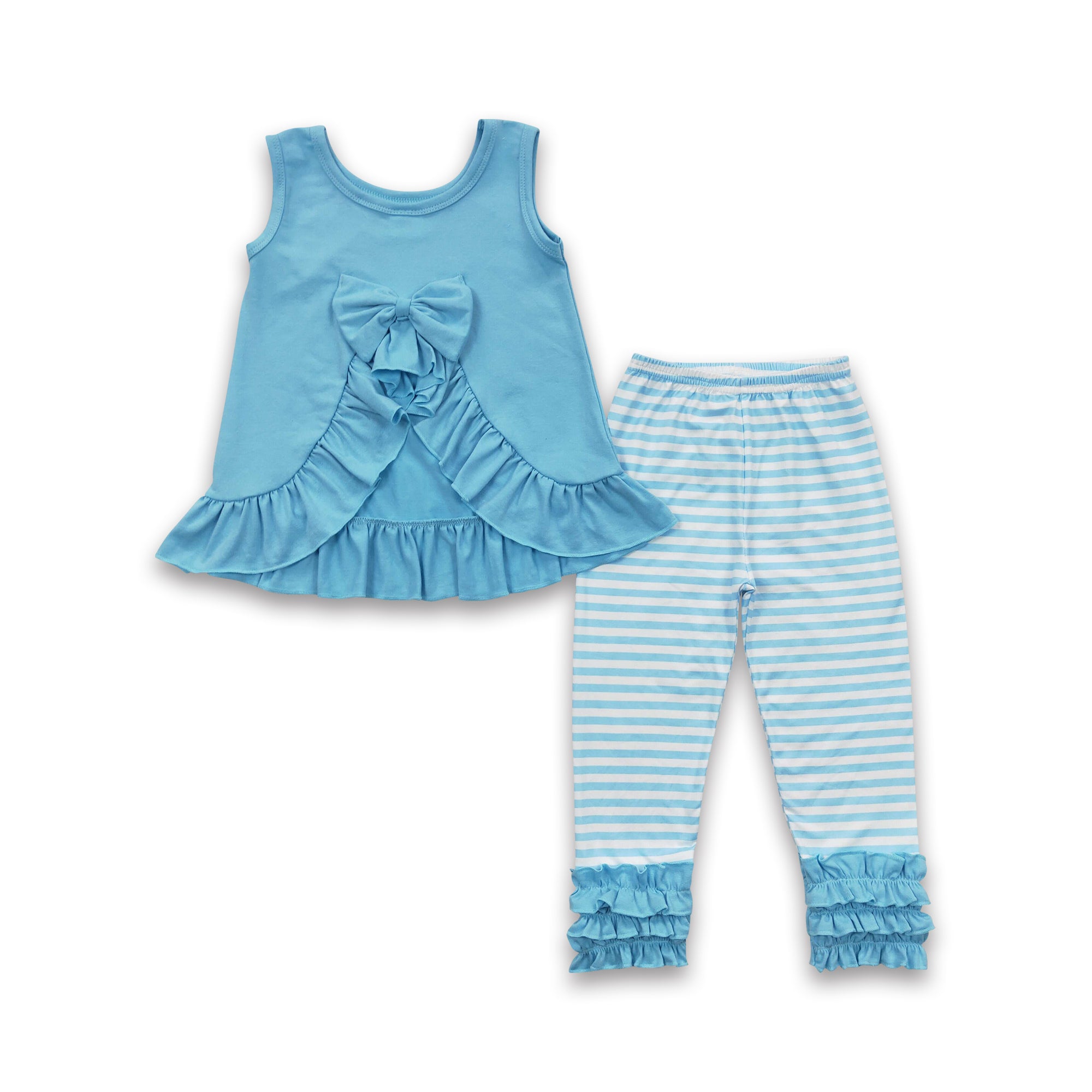 GSPO0505 kids clothes girls blue bow back fall spring outfit