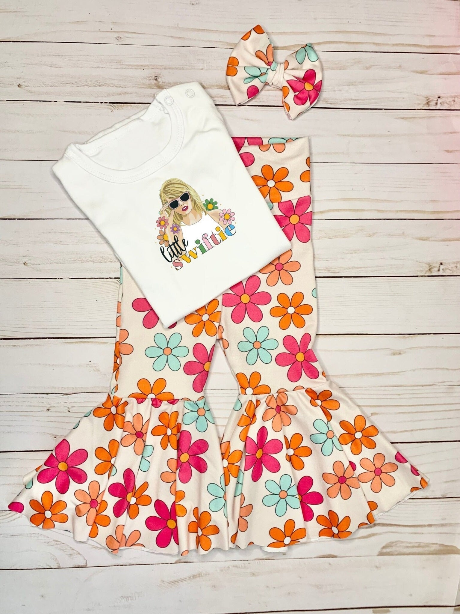 GSPO1429 RTS baby girl clothes flower singer girl bell bottoms outfit 1