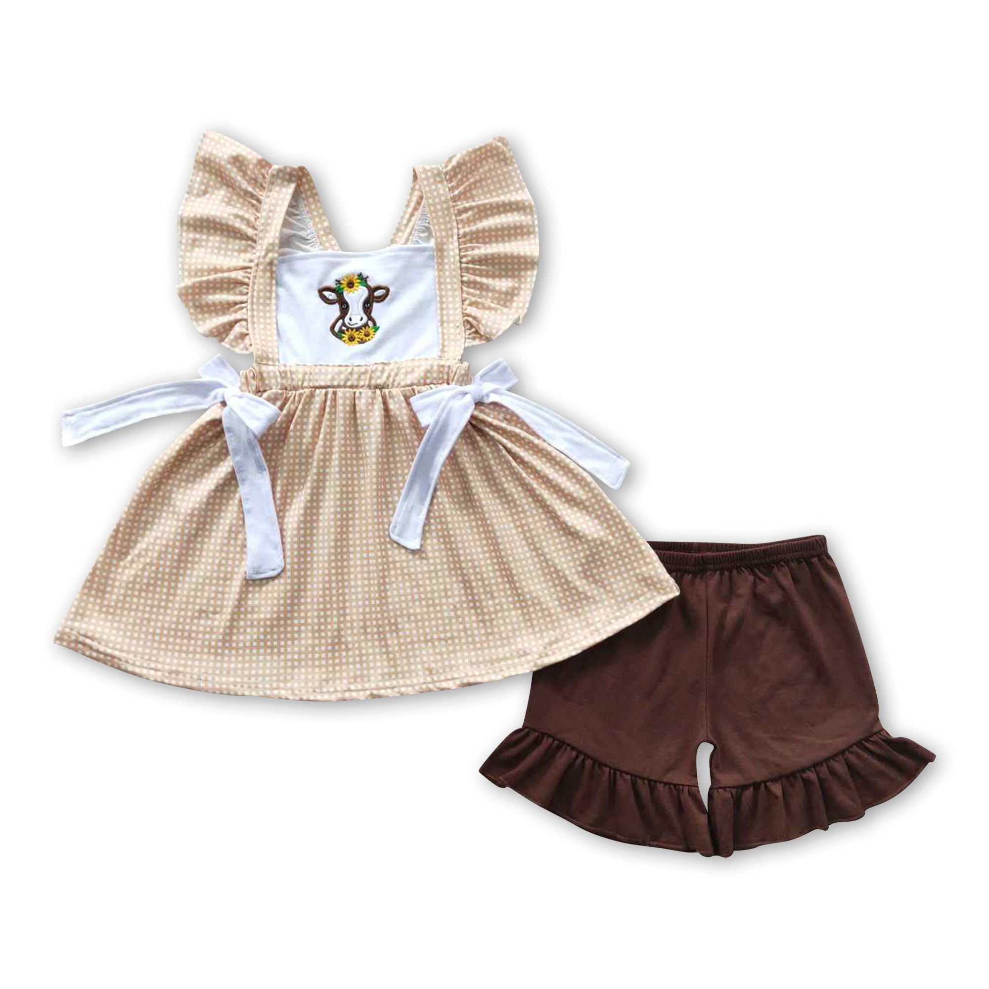 GSSO0233 kids clothes girls embroidery cow print summer outfit embroidered-promotion 2025.6.28 $5.5