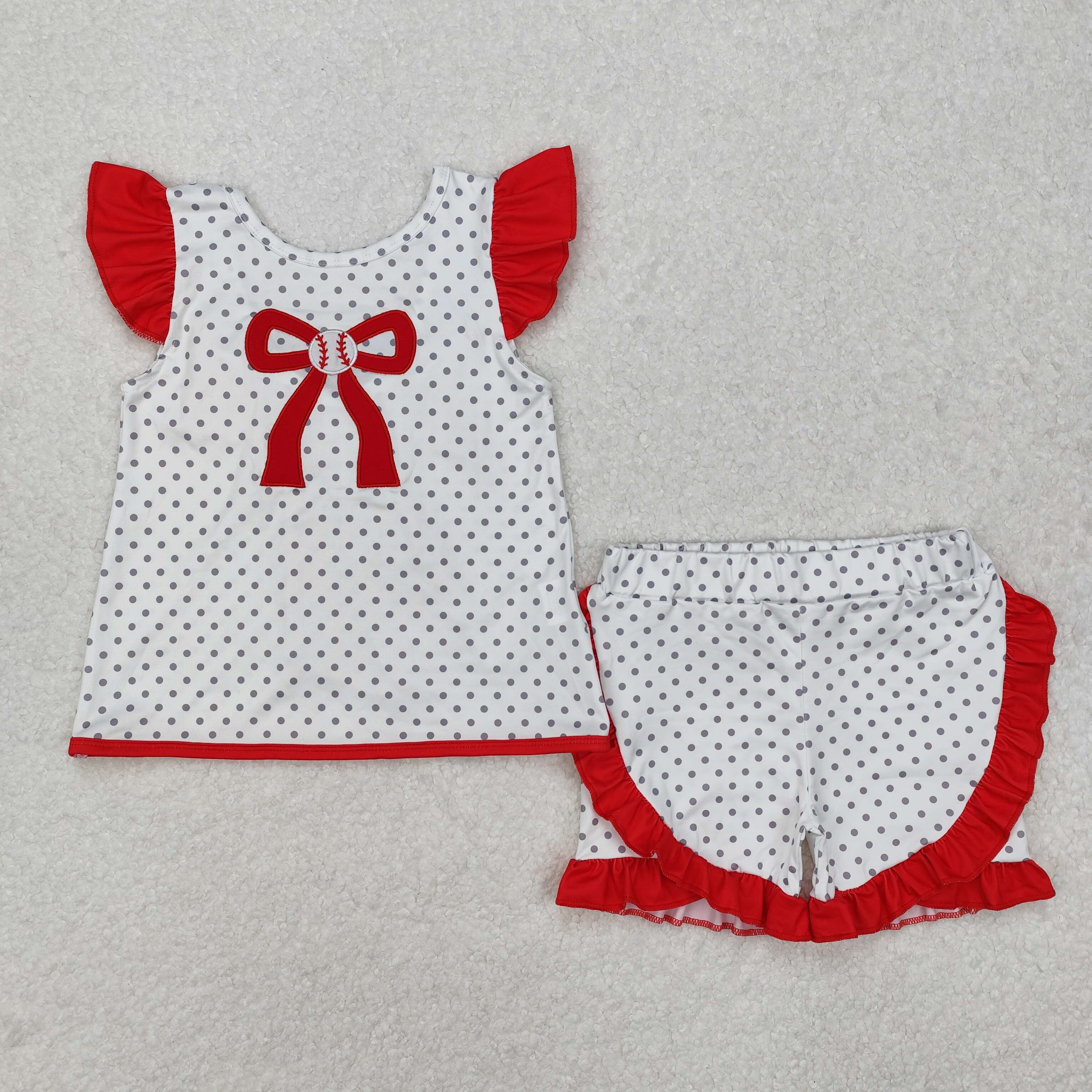 GSSO1698 RTS baby girl clothes bow embroidery baseball toddler girl summer outfit