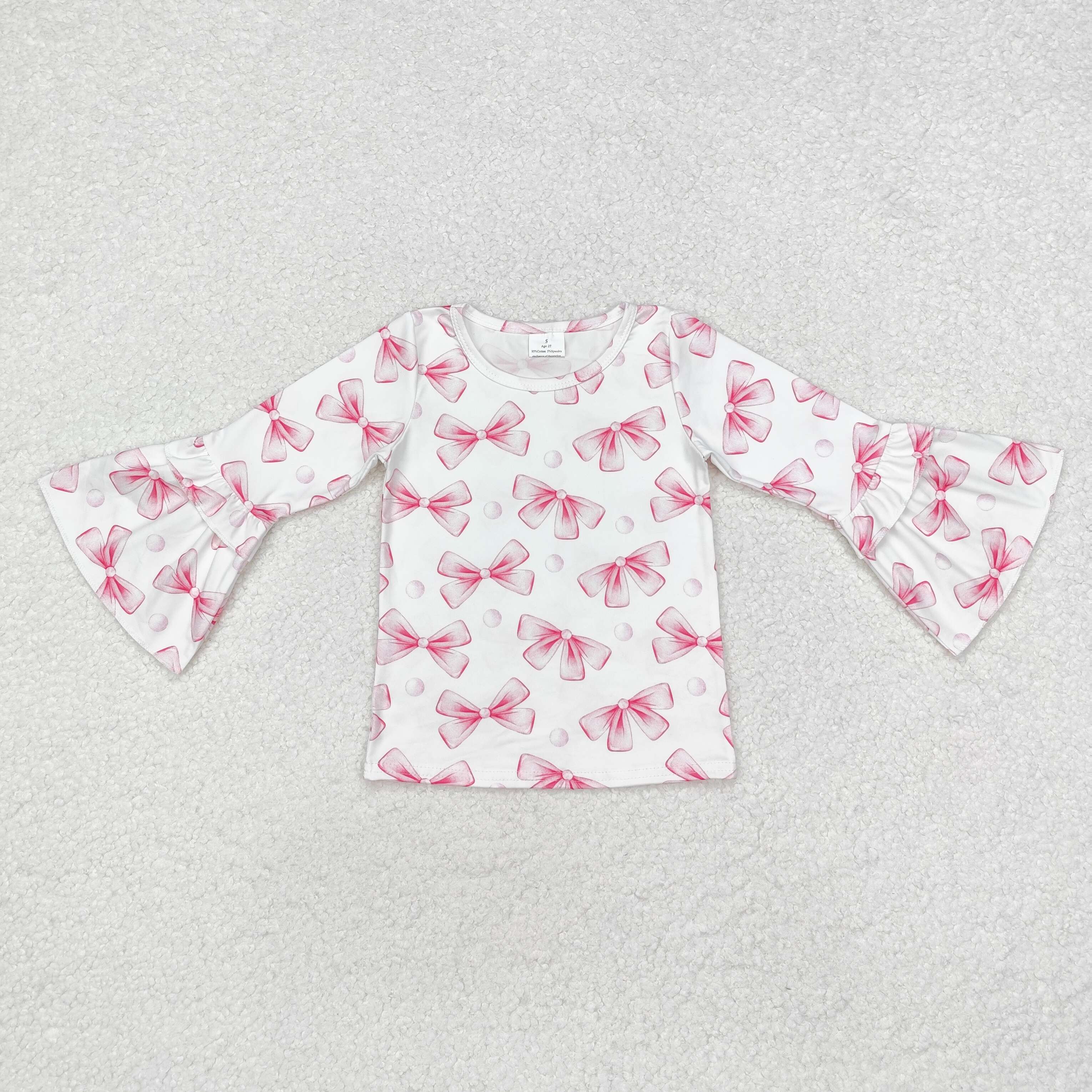 GT0779 RTS toddler girl clothes pink bows girl winter top shirt