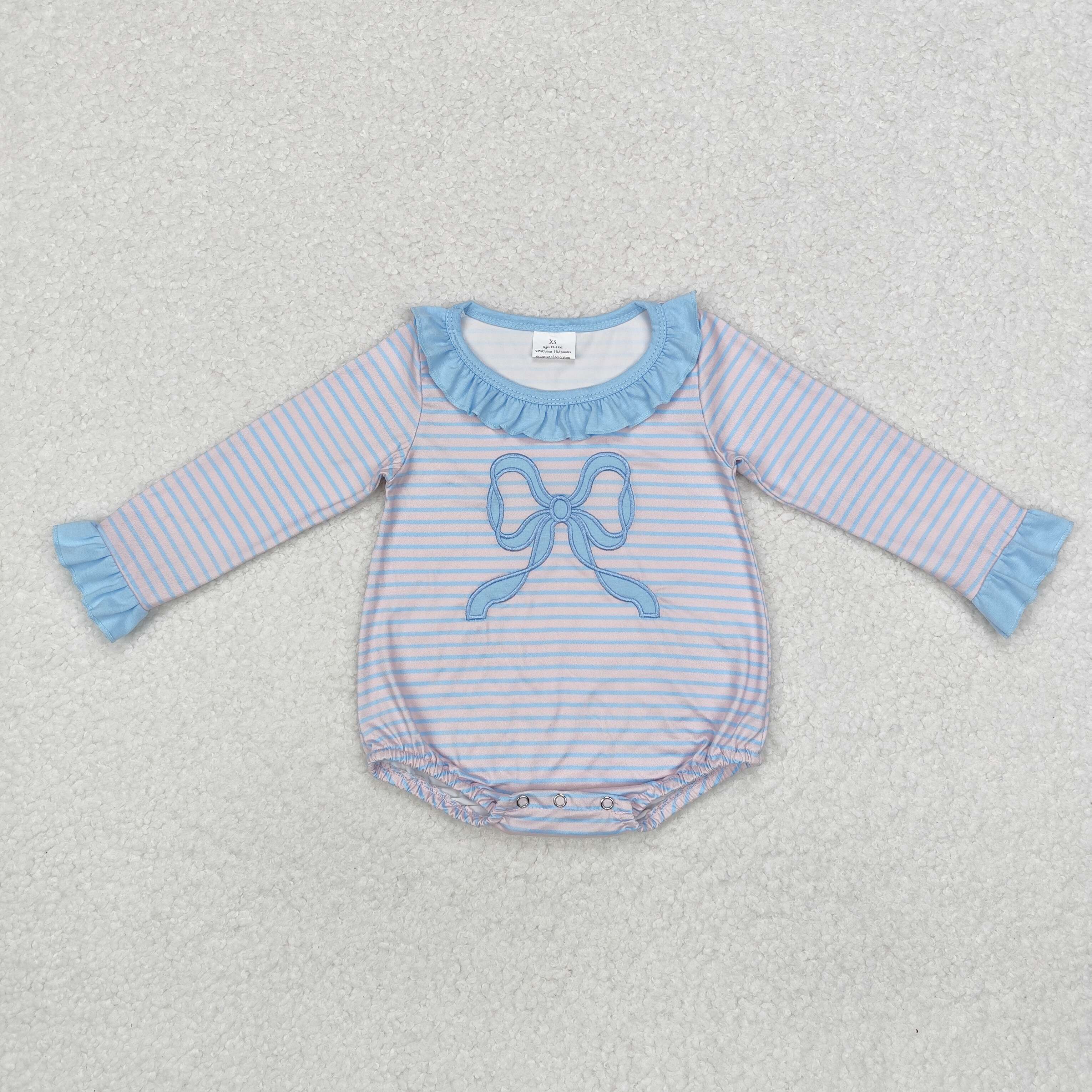 LR1379 RTS baby girl clothes bow girl winter bubble embroidery