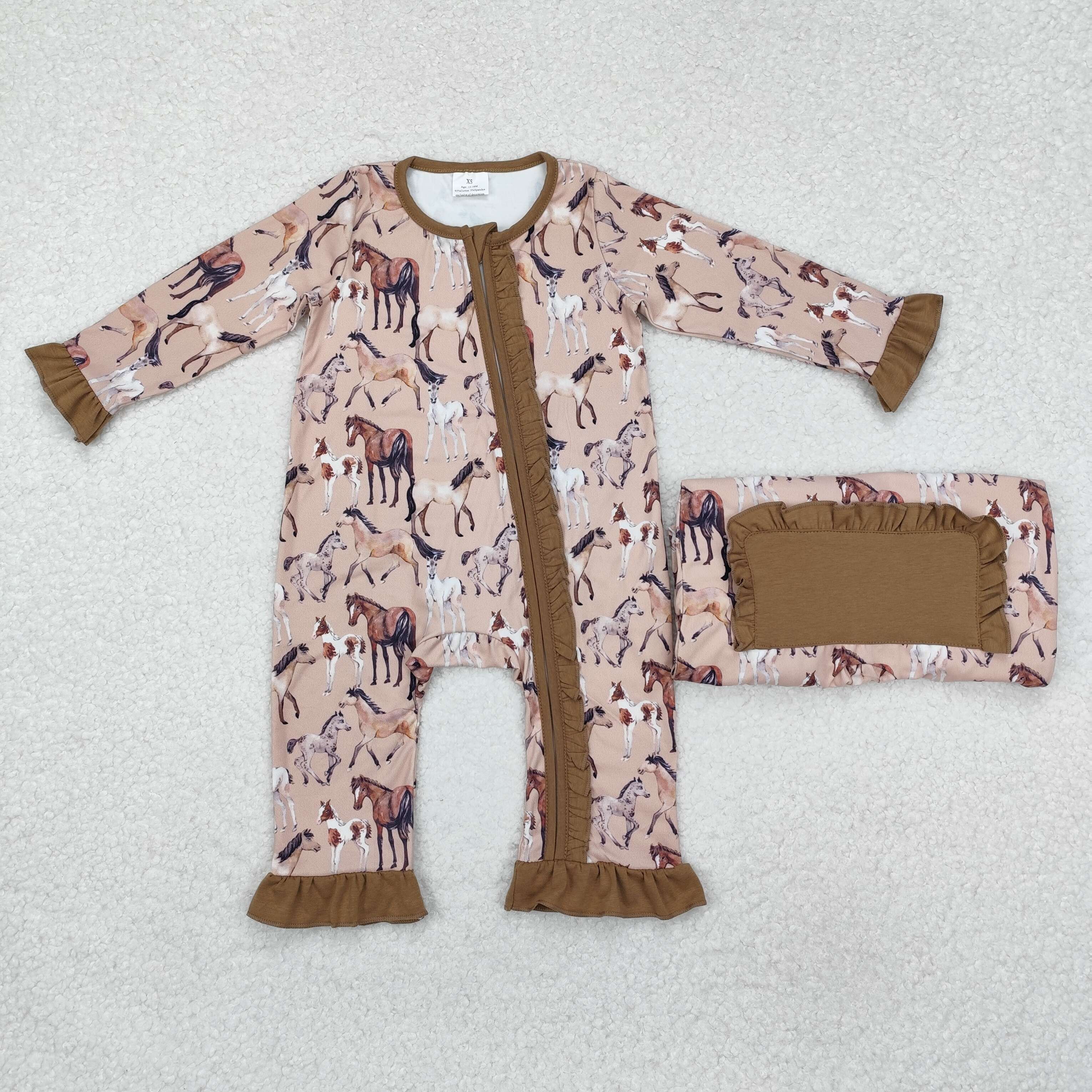 LR1771 RTS baby girl clothes cowboy girl winter romper zip romper