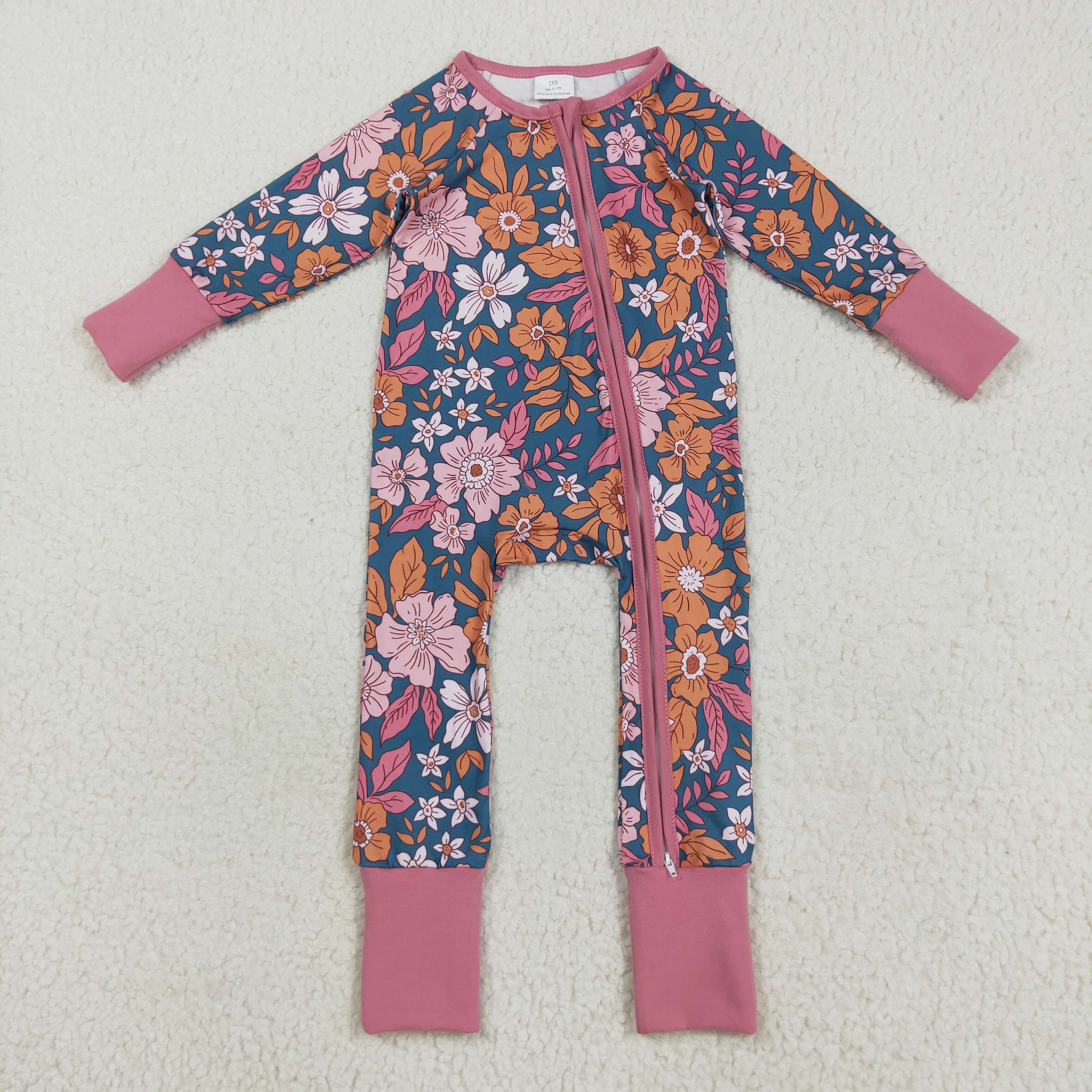 LR2244 RTS baby girl clothes flower toddler girl winter romper zip romper