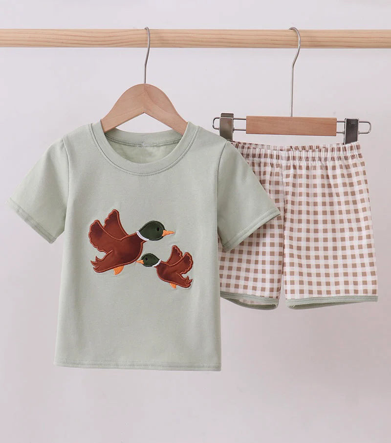 MOQ:5pcs BSSO1867 pre-order kids clothes mallard print boy summer outfit clothing set-2026.1.10