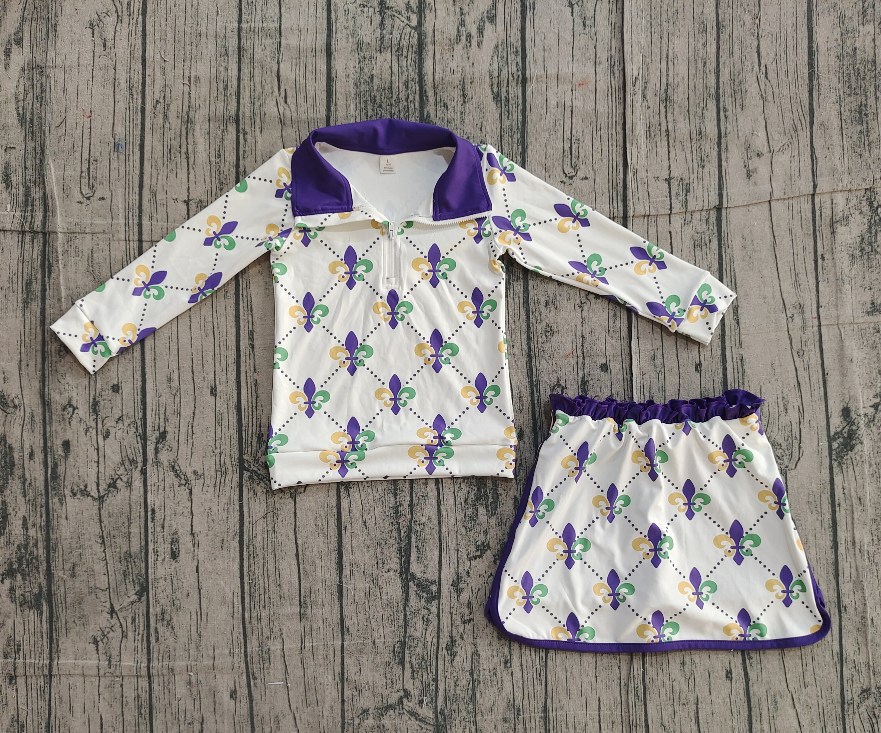 GLD1360 pre-order baby girl clothes mardi gras toddler girl yoga skirt outfit-real pic 2025.11.20