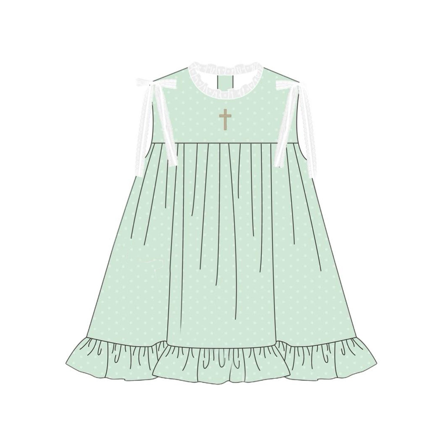MOQ:5pcs GSD2860 pre-order toddler girl clothes cross print girl easter summer dress-2025.10.2