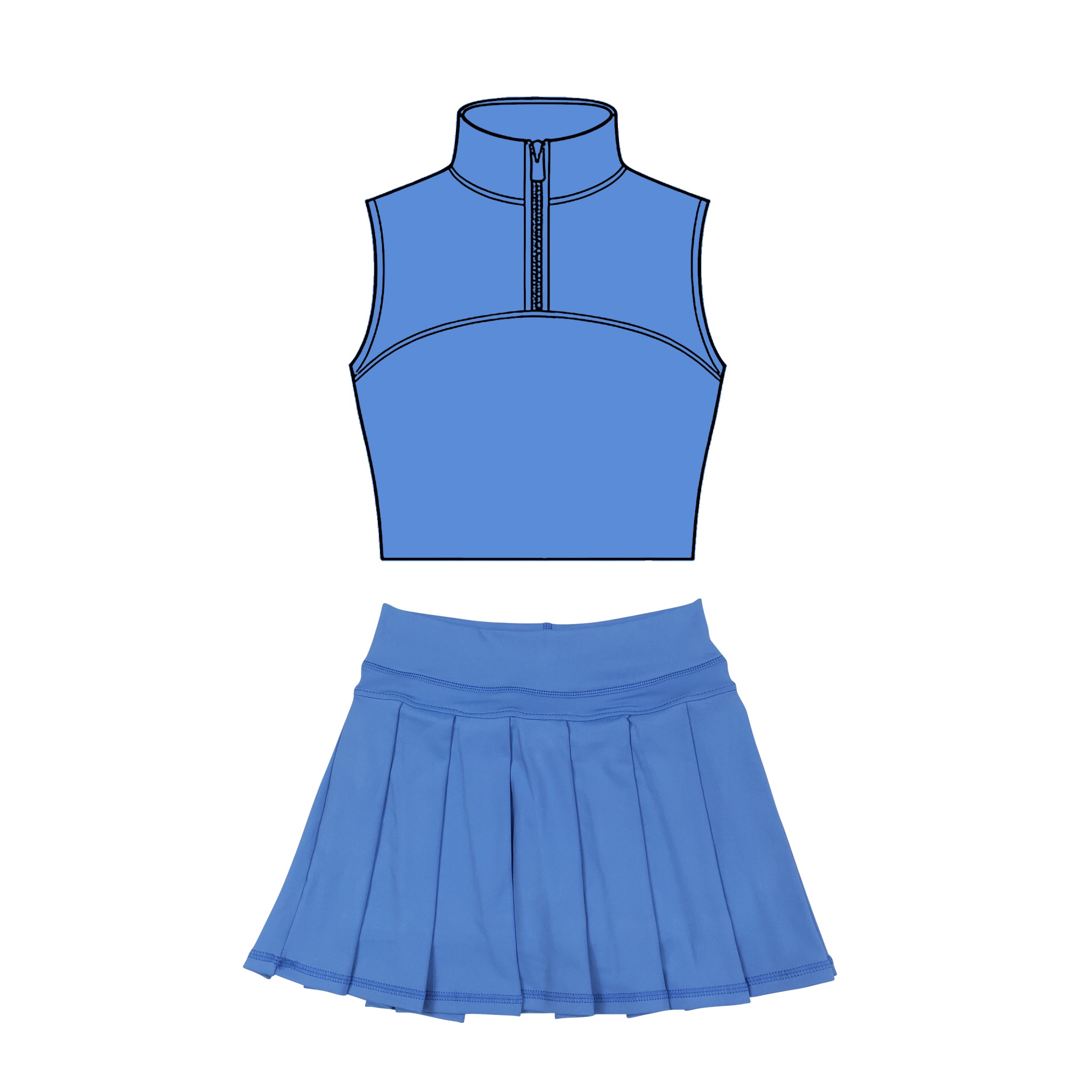 MOQ:5pcs GSD3298 pre-order toddler girl clothes blue print girl yoga summer skirt set-2025.11.27