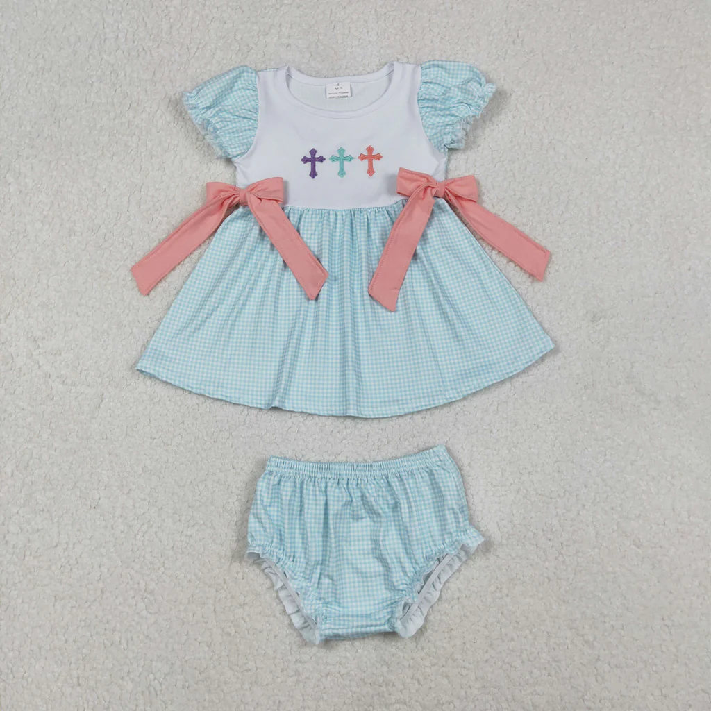 RTS kids matching clothing embroidery cross print clothing baby easter clothing-2025.11.11