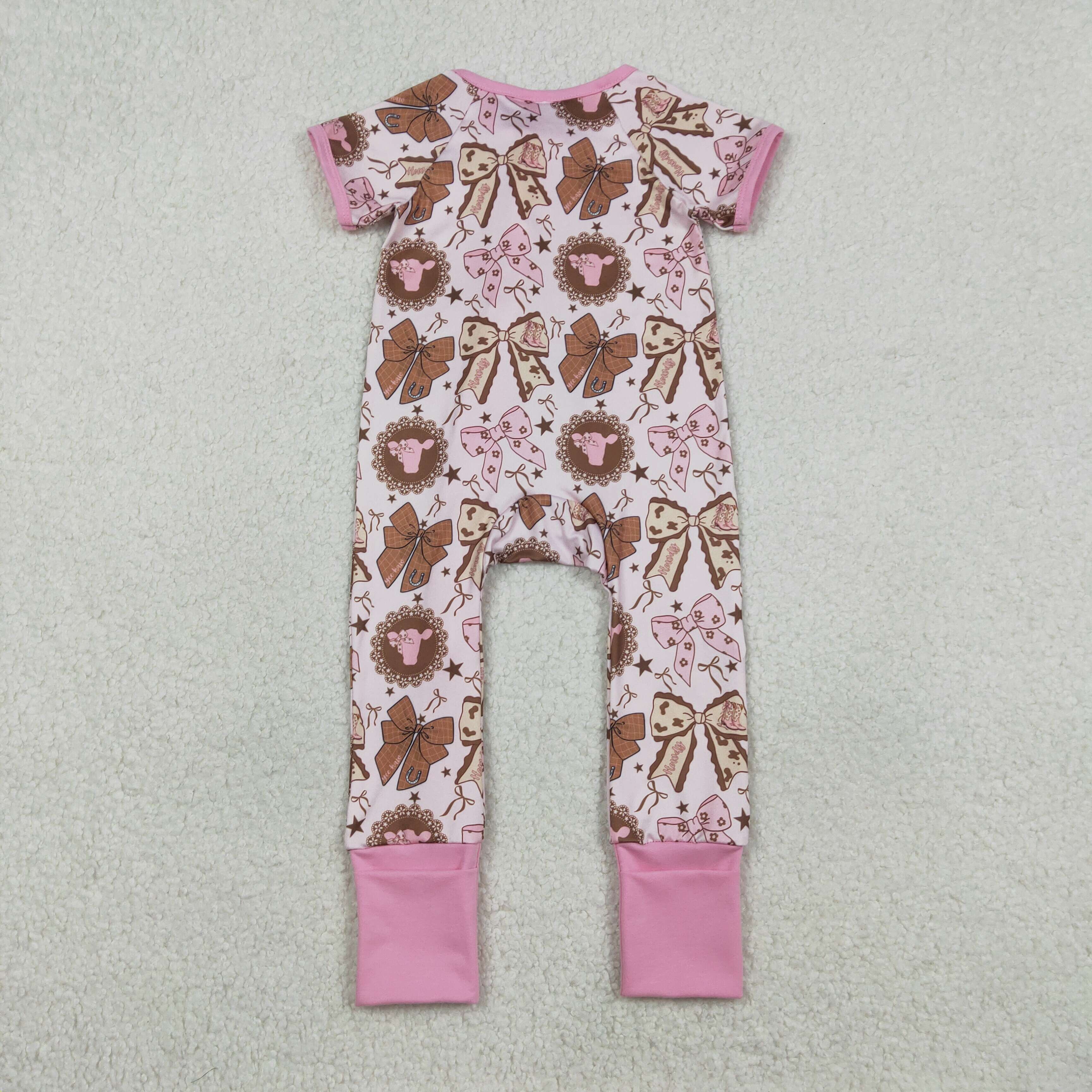 RTS SR3763 baby girl clothes pink bows print toddler girl summer romper