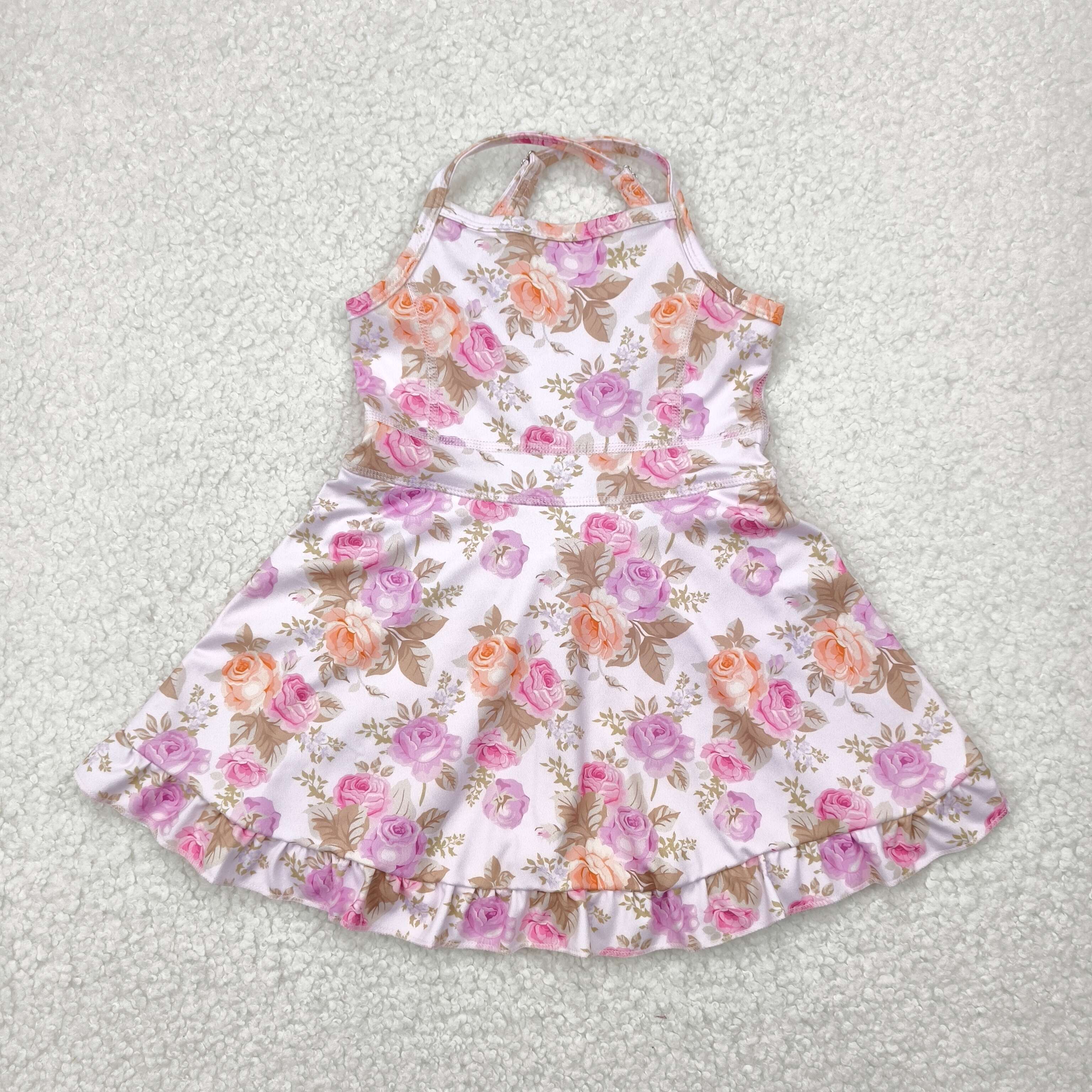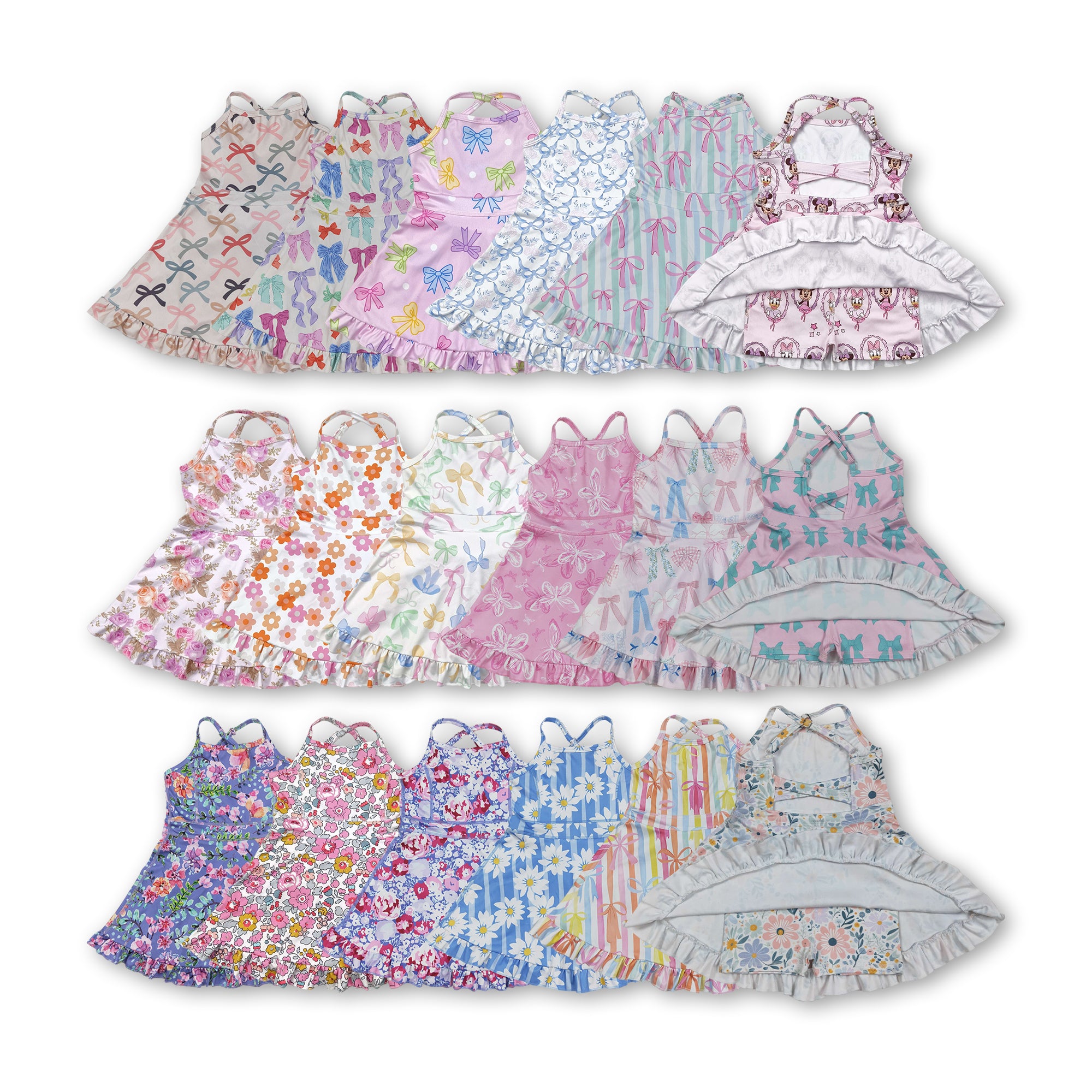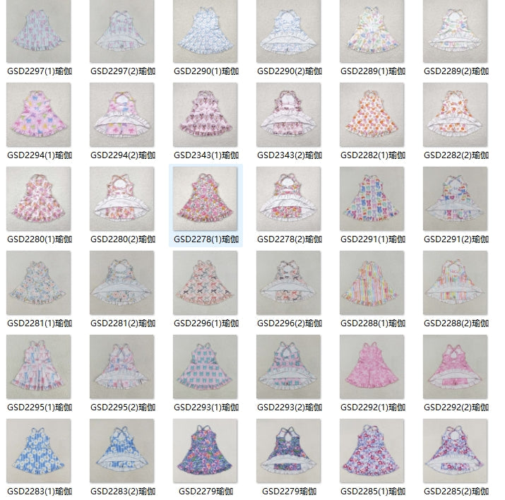 RTS toddler clothes matching clothing floral bow dress kids summer yoga clothing 2