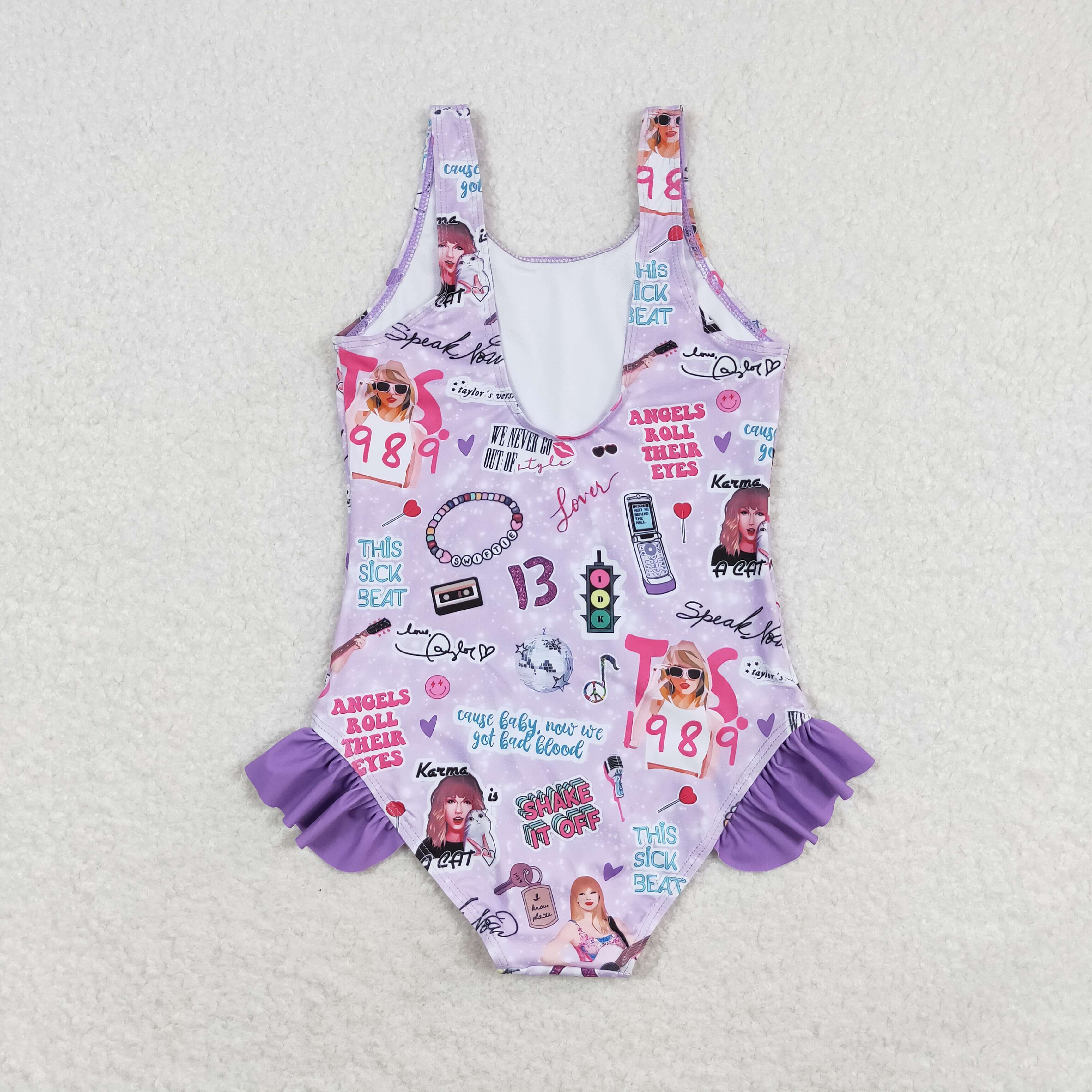 S0388 RTS baby girl clothes 1989 singer girl summer swimsuit beach wear 12-18M to 14-16T
