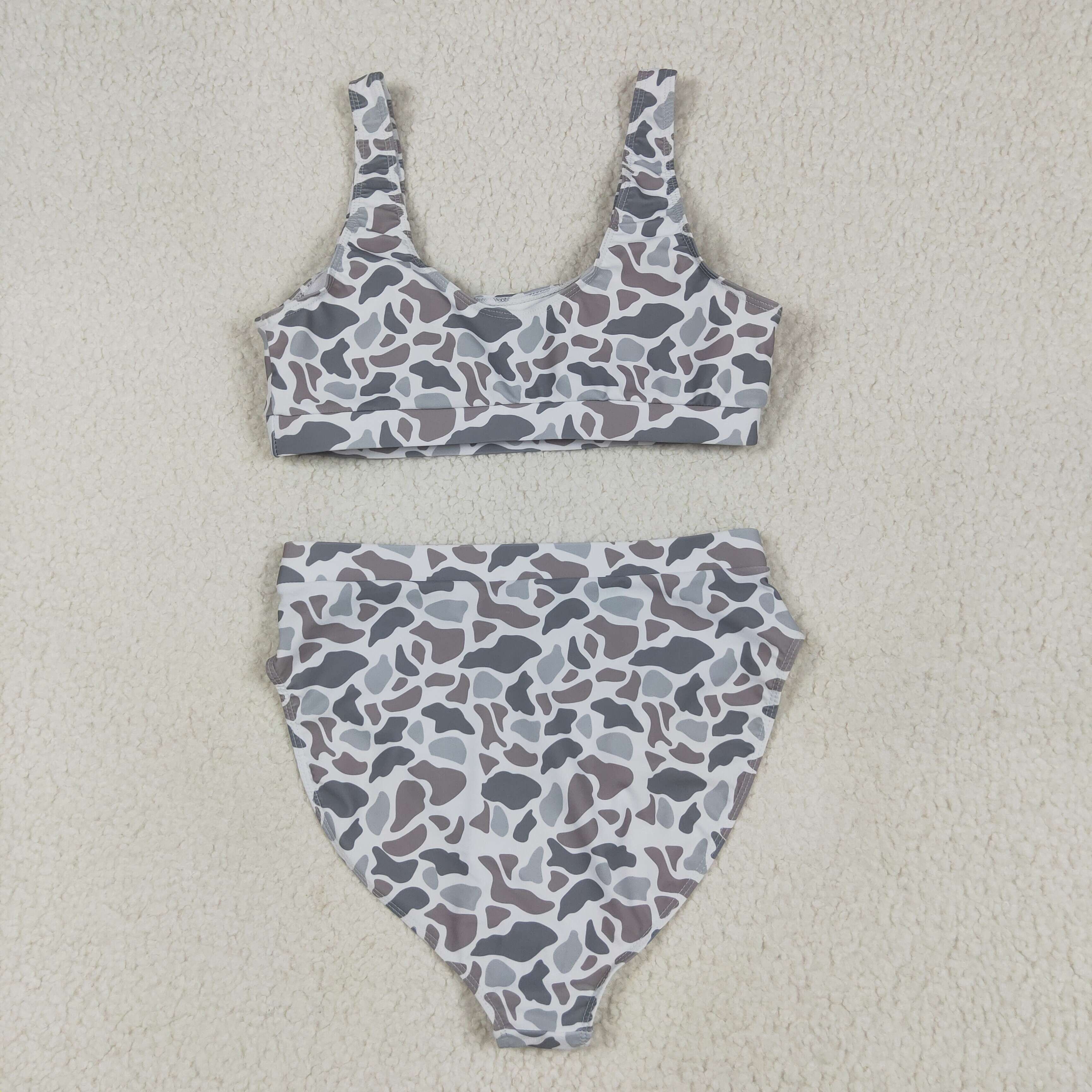 S0557 RTS women clothes grey adult leopard swim suit 2pcs outfit