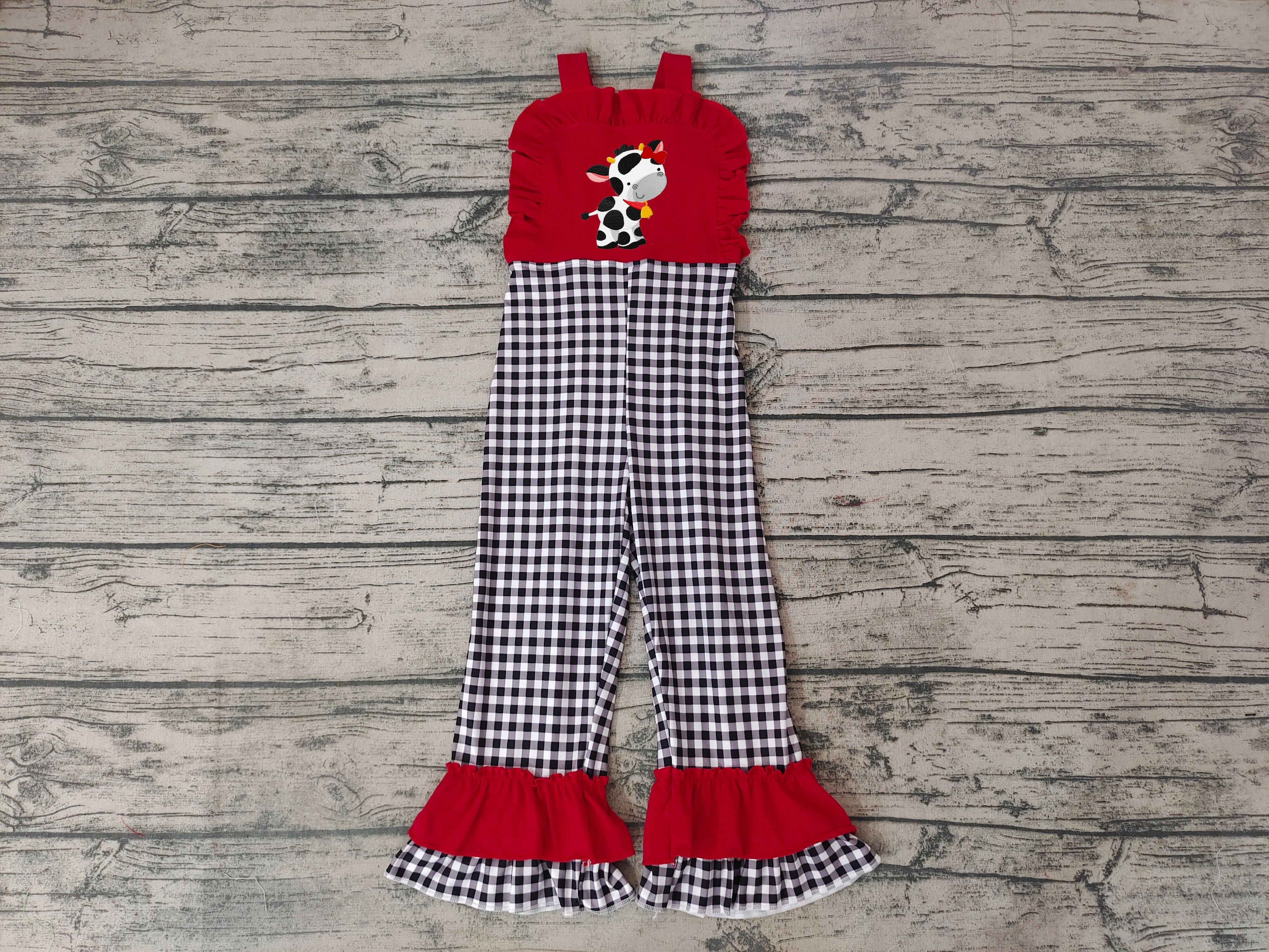 SR0165 baby clothes red cow embroidery farm jumpsuit embroidered