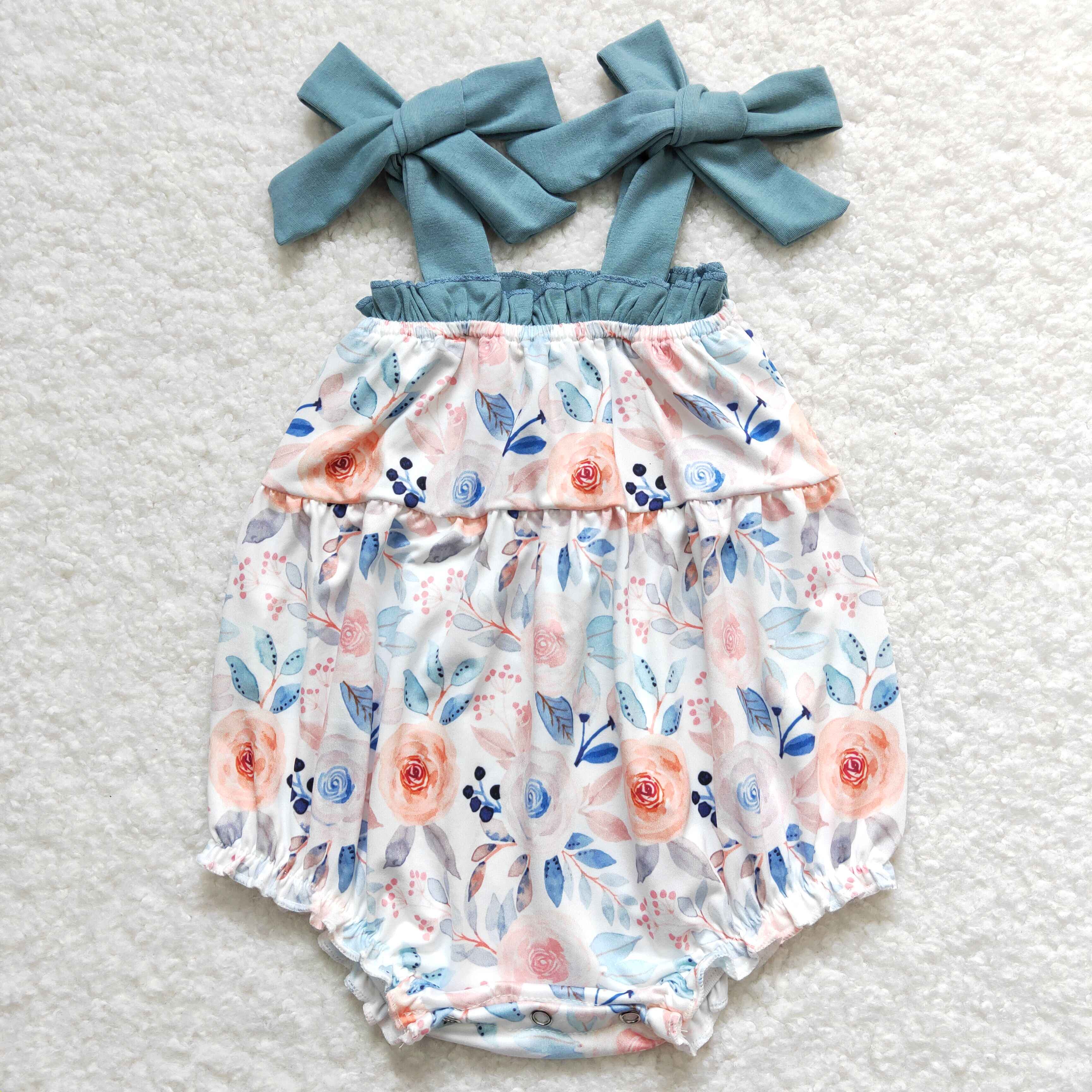 SR0907 baby girl clothes blue flower girl summer romper newborn summer bubble